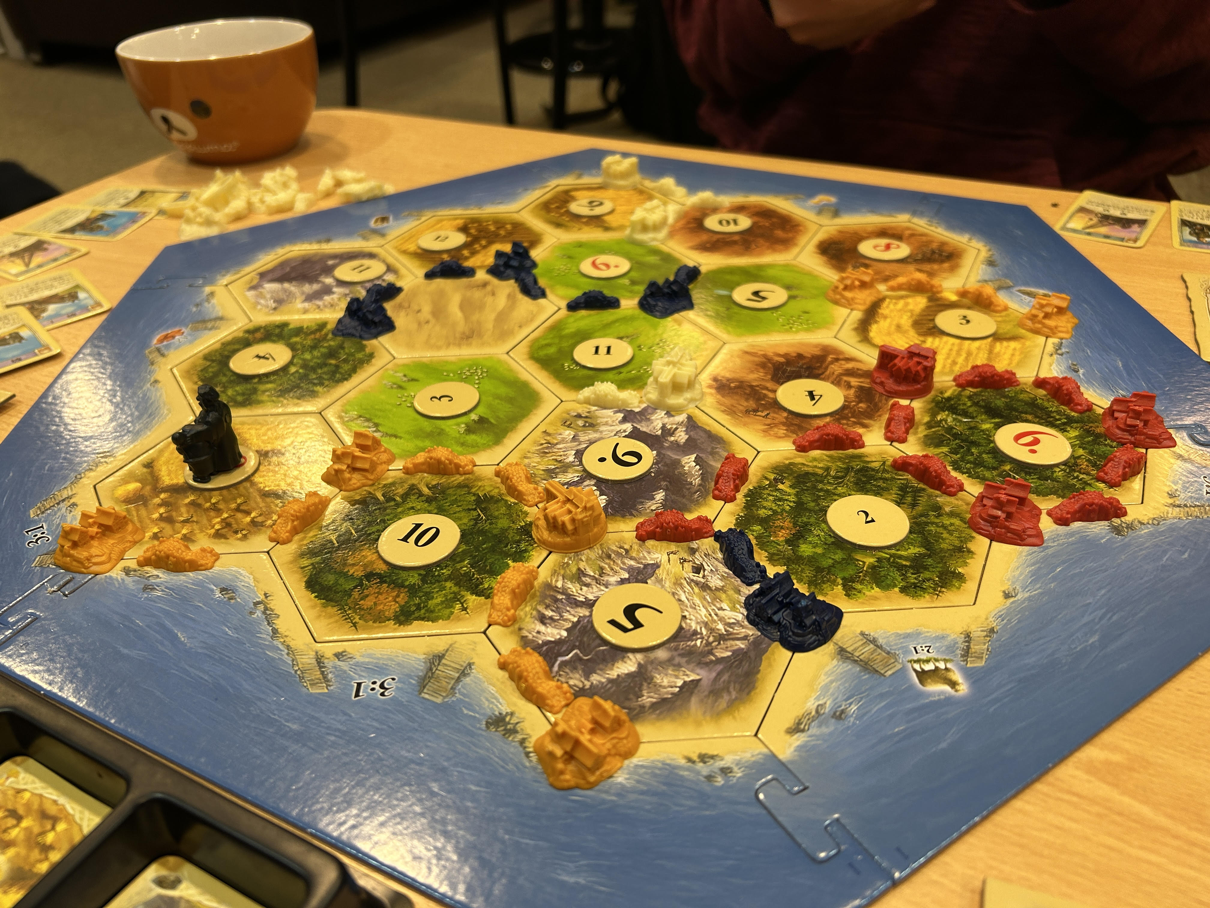 サイコロ振って、素材集めて、道作って、誰かと交渉して、街を作って…